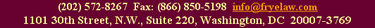 Copyright FryeLaw PLLC 2005-2008. THE INFORMATION CONTAINED ON THIS SITE IS INTENDED TO EDUCATE MEMBERS OF THE PUBLIC GENERALLY AND IS NOT INTENDED TO PROVIDE SOLUTIONS TO INDIVIDUAL LEGAL PROBLEMS, NOR TO CREATE AN ATTORNEY-CLIENT RELATIONSHIP. PLEASE READ OUR DISCLAIMER PAGE. |